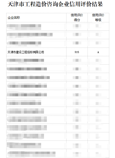 天津市工程造價(jià)咨詢(xún)企業(yè)信用評價(jià)A等級